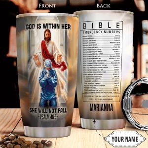 Personalized 20oz Nurse Tumbler God Is Within Her She Will Not Fall Bible Emergency Numbers