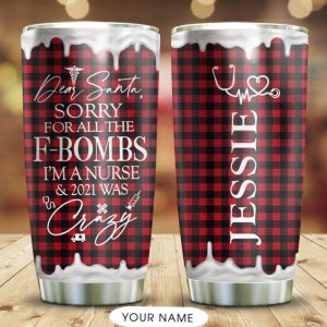 Personalized 20oz Nurse Tumbler Gift For Christmas Dear Santa Sorry For All The F Bombs 2021 Was Crazy