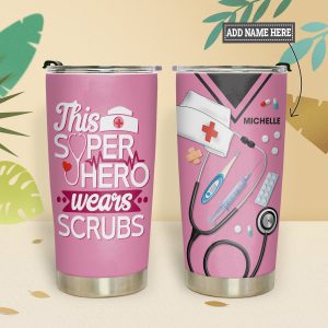 Personalized Glitter Nurse Tumbler This Super Hero Wears Scrubs