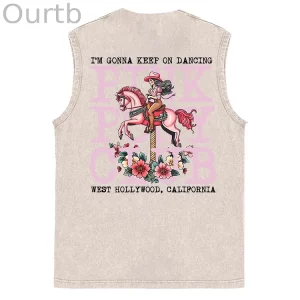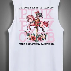 Sleeveless Cotton Tank Top with ‘I’m Gonna Keep On Dancing’ Print