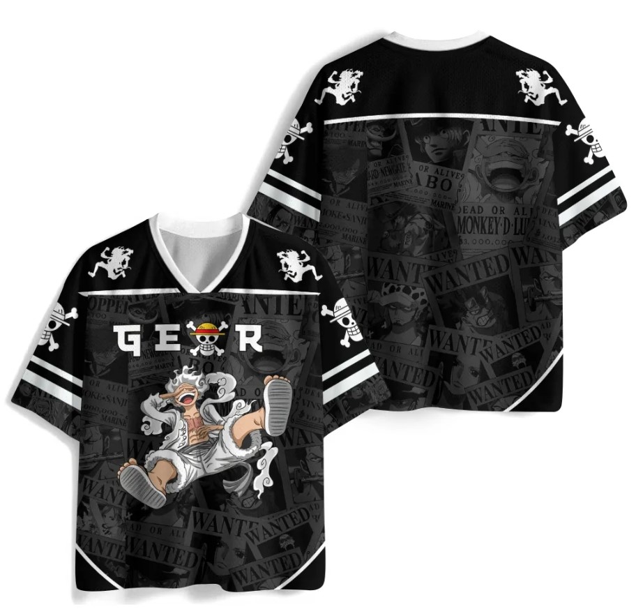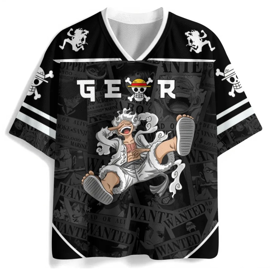 Custom Name One Piece Luffy Gear 5 Anime Football Jersey Black