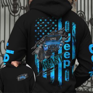 Jeep Couple All Over Hoodie Jeep Beauty Jeep Beast Red Blue