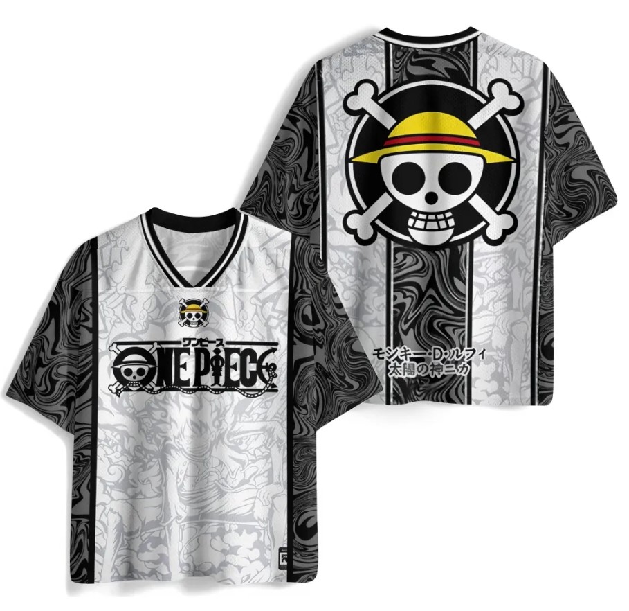 One Piece Luffy Anime Football Jersey Black