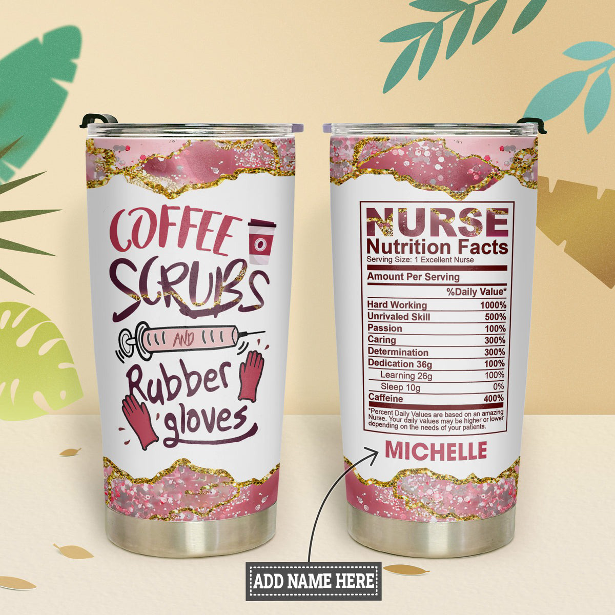 Personalized 20oz Nurse Tumbler Coffee Scrubs And Rubber Gloves Nurse Nutrition Facts
