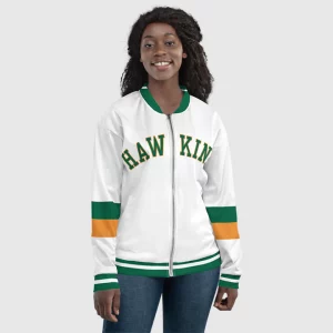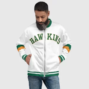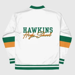 Show your school spirit with the Stranger Things Hawkins High School Varsity Jacket! This jacket features the iconic colors from Hawkins High, making it the perfect piece for fans looking to celebrate their love for the show. Whether you’re battling supernatural forces or going to your next convention, this stylish jacket will keep you warm and in the Hawkins spirit all season long!